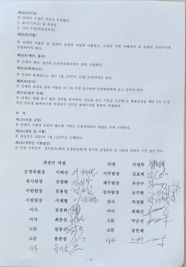 º» ȸÀÇ °³Á¤ ÇÊ¿ä½Ã ¿î¿µÀ§¿øÈ¸ÀÇ ÀǰáÀ» °ÅÃÄ º» ȸĢÀº °³Á¤ÇÑ ³¯·ÎºÎÅÍ È¿·ÂÀ» ¹ß»ýÇÑ´Ù.